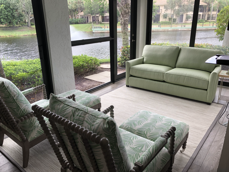 Where else but Palm Beach can you put Tocaans on a custom raffia bed and combine ultra suede sofas and aqua carpet.This home is vibrant, sophisticated and grandchildren-friendly. Who said you can't have it all?